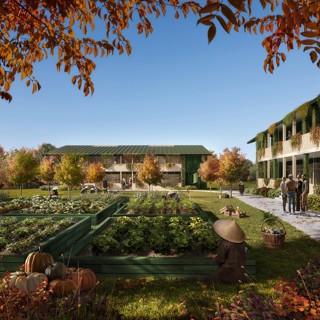 Die Entwürfe für das buddhistische Kloster Plum Village wurden von MVRDV in Zusammenarbeit mit dem Co-Architekten MoonWalkLocal sowie den Fachplanern OTEIS, VPEAS und Emacoustic erarbeitet.