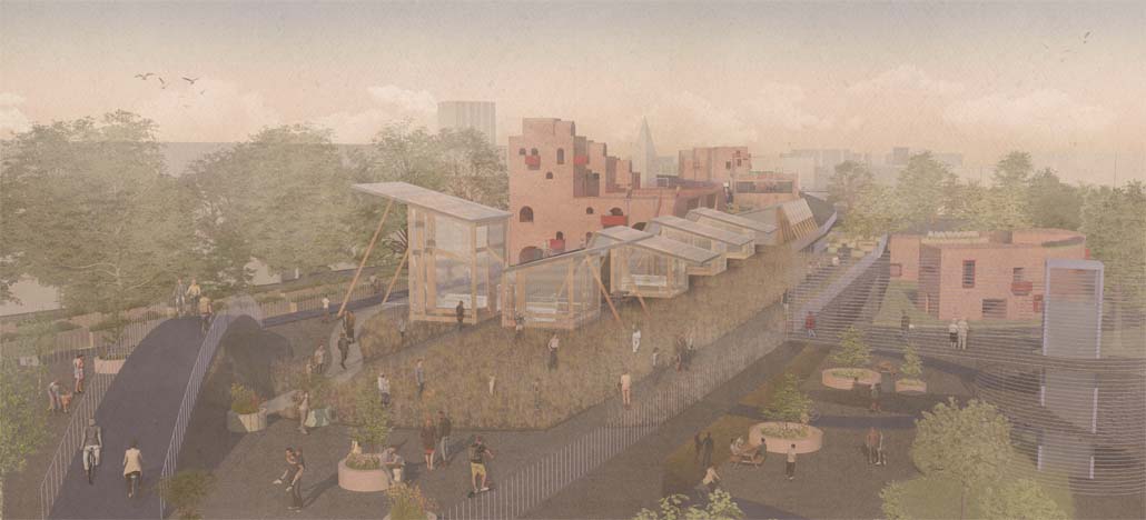 Gesche Gerber und Ernst-Wolf Abée, Vorsitzende des AIV-Schinkel-Ausschusses: „Wir haben uns sehr gefreut, dass in diesem Jahr mehrere internationale Beiträge unter den prämierten Arbeiten sind. Der Schinkelpreis Architektur wurde an eine beeindruckende Arbeit von vier Studierenden der University of Edinburgh vergeben, die zusätzlich mit einem Reisestipendium ausgezeichnet wurden. Mit detailreicher Phantasie wird die Transformation der Autobahntrasse in differenzierte urbane Mikrotope beschrieben. Zwei weitere Preise gingen zudem an Studierende und Absolventen der TU Krakau und der University of Edinburgh. Daran sehen wir, dass die gestellten Aufgaben exemplarisch für die zukünftigen Herausforderungen bei der Entwicklung urbaner Agglomerationen in vielen Ländern sind.“