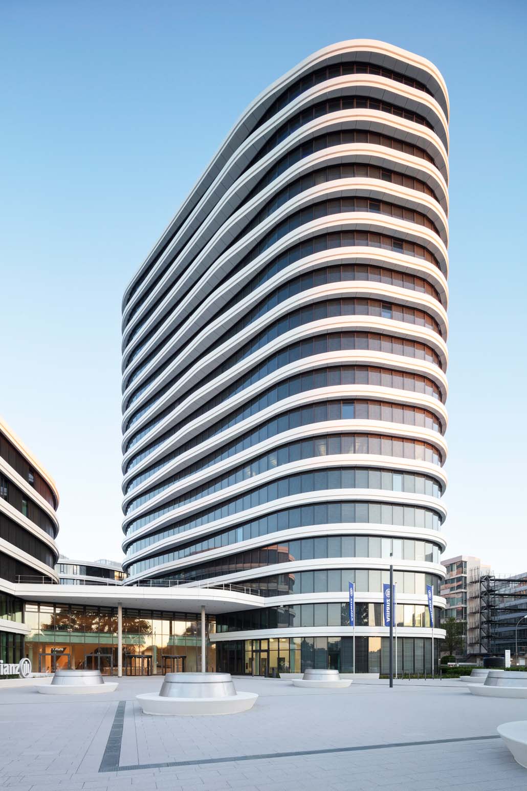 Das Nachhaltigkeitskonzept umfasst Geothermie, Photovoltaikanlagen, Betonkernaktivierung und strebt eine DGNB-Platin-Zertifizierung an. Die Betriebsstätten der Allianz Gruppe sind bereits seit 2012 klimaneutral.