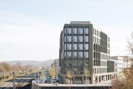 Als „Muster an Klimafreundlichkeit und Nachhaltigkeit“ wurde das im August 2020 fertiggestellte, siebengeschossige Gewerbe- und Bürohaus an der Tübinger Westspitze bereits von der regionalen Presse gelobt, ebenso als städtebauliches Zeichen, das eine neue, urbane Maßstäblichkeit markiere. Tatsächlich zählt das in Holz-Hybrid-Bauweise errichtete Gebäude zu den ersten Projekten dieser Größenordnung in Deutschland und wurde im Auftrag der Westspitze GmbH von a+r Architekten Stuttgart/Tübingen entworfen.
