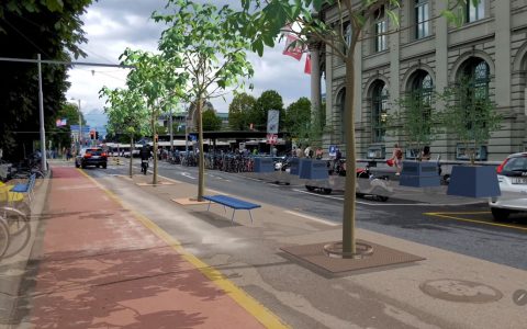 - AR-Umgebung der Luzerner Bahnhofstrasse mit Bänken und Bäumen (c) Tobias Matter/Hochschule Luzern