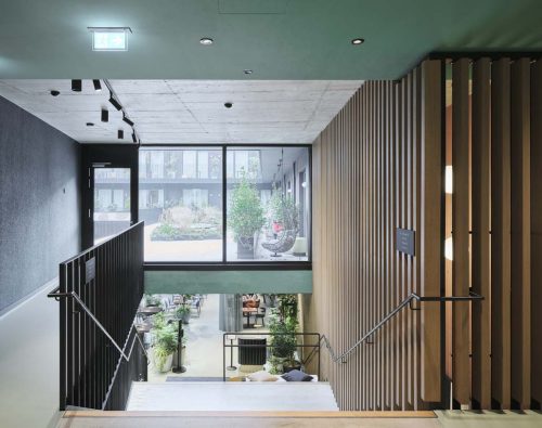 Nach typischer Manier der Wienzeilenhäuser, fügt sich das Hotel nahtlos in die bestehende, dichte Bebauung der Umgebung ein. Das neu errichtete Gebäude führt den Besucher vom typisch quirligen Treiben dieses Wiener Bezirks zunächst durch eine auffällig inszenierte Passage. Von hier öffnet sich der Blick in eine weitläufige, beruhigte sowie großzügig begrünte Innenhof-Oase von 185qm, die den Ankunftsbereich mit Rezeption, Bibliothek, Bar & Café einleitet.