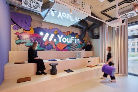 Im Herzen des Raumes liegt der namensgebende „YouFin Kessel“: eine offene Event- und Community-Area, die als identitätsstiftendes Zentrum fungiert.