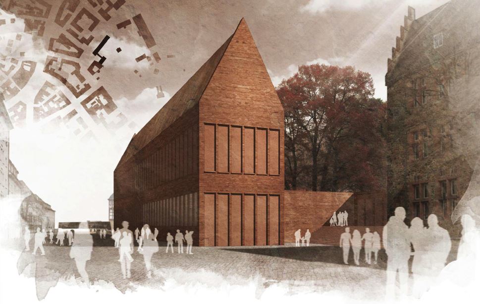Im Sommersemester 2019 setzt sich das Modul Entwerfen und Bauen im Bestand mit der Erweiterung des Oberhessischen Museums OHM in Gießen auseinander. Es galt eine repräsentative Museumserweiterung für das denkmalgeschützte Alte Schloss am Brandplatz zu planen. Mit besonderer Berücksichtigung auf den Botanischen Garten, entstand der Entwurf eines schmalen Riegels mit steilem Satteldach, welcher mit seiner Position an das ehemalige Kollegiengebäude aus dem 19. Jahrhundert erinnert. Sowohl das strenge, rechtwinklige Raster des Neubaus, welches sich besonders in der Fassade widerspiegelt, als auch der Einsatz von hochwertigem roten Natursandstein sind als Antwort auf das Alte Schloss zu sehen.