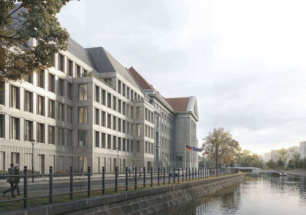 Berlin (pm) – Im Wettbewerb zur Weiterentwicklung des Berliner Dienstsitzes des Bundesministeriums der Verteidigung (BMVg) wurden zwei erste Preise vergeben. Die Entwürfe des Berliner Architekturbüros Sauerbruch Hutton, zusammen mit ST raum a Landschaftsarchitekten, und des Münchner Architekturbüros Henn, zusammen mit SINAI Landschaftsarchitekten, wurden gleichrangig ausgezeichnet. Beide erfüllten im Wesentlichen die komplexen qualitativen und quantitativen Anforderungen der Wettbewerbsaufgabe auf jeweils eigenständige Weise.