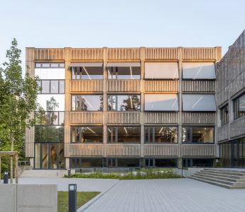 Das Gymnasium in Neustadt an der Waldnaab ist Teil eines Schulcampus am Rande der Kreisstadt. Es war 1977 von den Architekten Georg Rembeck, Xaver Bogner und Ferdinand Hasl auf einer Waldlichtung errichtet worden. Zusammen mit der erforderlichen energetischen Sanierung der kompakten Beton-Architektur gelang Brückner & Brückner Architekten die Verwandlung des ungeliebten Beton-brut-Bauwerks in einen zeitgemäßen Ort des Lernens, der Kommunikation und der Begegnung. Für den modernen Schulbetrieb wurde die Raumordnung systematisch umstrukturiert und eine neue Eingangssituation mit großer Freitreppe geschaffen. Neu ist auch die Aula mit Tageslichtdecke sowie eine mehrgeschossige Bibliothek mit Vortragsraum und kommunikativen Sitznischen auf den Fluren. So entstand ein fortschrittliches Schulgebäude, technisch und funktional auf der Höhe der Zeit und mit lichtdurchfluteten Räumen in warmen und hellen Farben. Allein schon dafür hätte das Projekt eine Auszeichnung verdient, zumal die umfangreiche Transformation im laufenden Betrieb und unter ressourcenschonendem Einsatz der Bestandsmaterialien erfolgte.