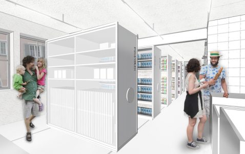 Der erste Preis von „bdia ausgezeichnet“ geht an die Innenarchitekturabsolventin Kathrin Müller. Ihre Bachelorarbeit „Ausganspunkt“ überzeugte sowohl die beiden Betreuer*innen Prof. Karin Sander und Prof. Rainer Haegele von der Fakultät für Innenarchitektur, Architektur und Design, als auch die Jury des Bund Deutscher Innenarchitekten (bdia). Kathrin Müller entwickelte ein Konzept für einen Einkaufsladen, der 24 Stunden geöffnet hat und zu einer Entwicklung von ländlich gelegenen Klein- und Mittelstädten beitragen soll. Eine Ladenfläche am Marktplatz in Freudenstadt, einer 24.000 Einwohner großen Stadt im Nordschwarzwald in deren Nähe Katrin Müller geboren und aufgewachsen ist, diente als Ausgangspunkt des Entwurfes.