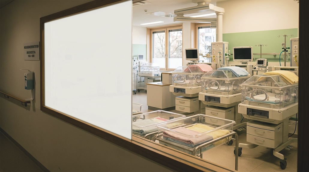 Sichtschutzfolie für medizinische Einrichtungen per Knopfdruck
