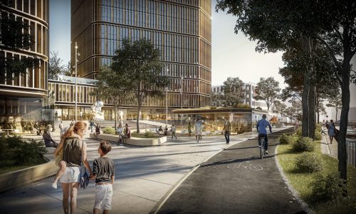 Im Zuge der fortlaufenden Detaillierung der gestalterischen Planung wurden auch erstmals Visualisierungen erstellt, die der Öffentlichkeit ein erlebbares Bild des Projekts mit seinen öffentlichen Räumen und dem Zusammenspiel mit dem angrenzenden The Westin Hotel, das ebenfalls im Eigentum von Covivio steht, präsentiert.