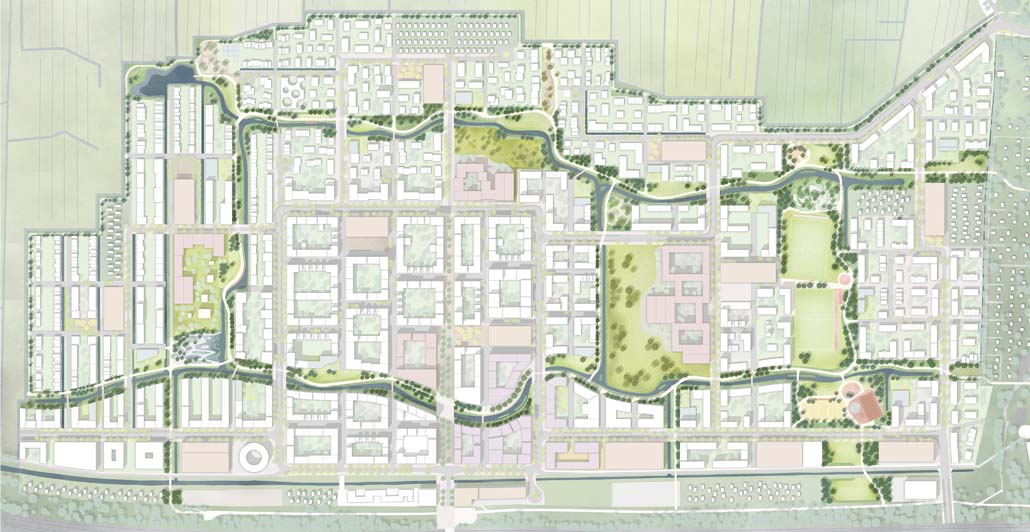 Der Verlauf der Wege im Grünen Loop wird inklusive erforderlicher Stege zur Querung des Gewässers geplant. Es werden qualitätvolle Verbindungen zu den anschließenden Quartieren und öffentlichen Einrichtungen wie z.B. Schulen hergestellt.