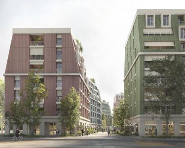 Zürich (pm) – Mit dem ‹Quartier der tanzenden Paare› gewinnen KCAP (Städtebau und Architektur), Studio Vulkan (Landschaft) und Raumanzug (Nachhaltigkeit) den Studienauftrag für ein neues Wohnquartier mit 279 Wohnungen in der Nähe von Zürich. Wangen-Brüttisellen ist eine stark wachsende Gemeinde, die eine Verdichtung plant. Eines der für die Überbauung vorgesehenen Grundstücke ist das Erni-Areal, ein ehemaliges Industriegebiet in der Nähe des Bahnhofs. Ziel war es, ein dichtes und lebenswertes Quartier in einem kontrastreichen, fast kakophonischen Umfeld zu schaffen.