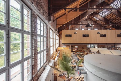 In der 25 x 65 Meter großen Halle selbst blieb trotzdem noch viel Platz für Gewerbe, Gastronomie und Ausstellungen. So ist ein überdachter, wettergeschützter „Marktplatz“ entstanden – mit offenen Ständen, einem Unverpacktladen, einem Blumengeschäft, einem Buchladen sowie einer Konditorei mit Café. Er steht den Bürgerinnen und Bürgern von Achern ganzjährig als Treffpunkt zur Verfügung.