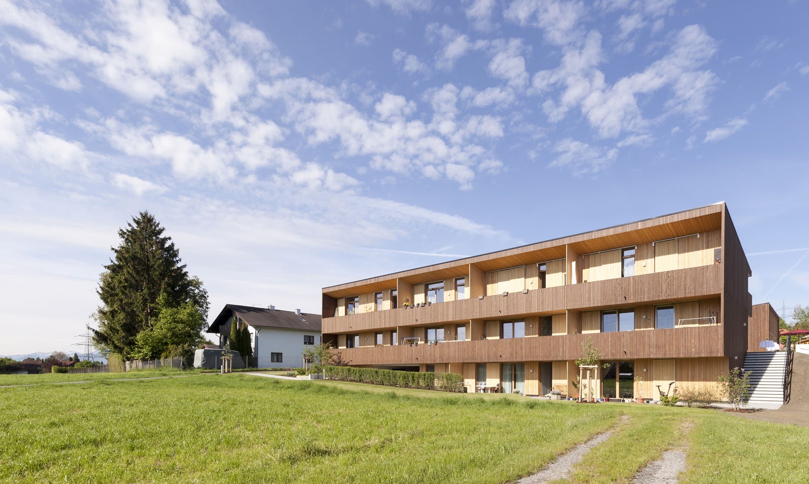 Zum Thema ‚Kleine Wohnanlagen mit regionaler Charakteristik‚ ist es der Gemeinde Schechen gelungen, mit ihrem Projekt ‚Seniorenwohnen Schechen‘ geförderten Wohnungsbau in Holzbauweise mit 16 Wohneinheiten und Gemeinschaftshaus zu errichten.