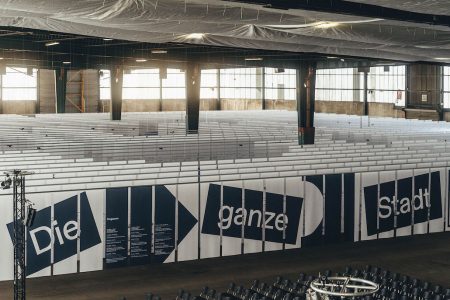 Gestaltet und kuratiert von KAWAHARA KRAUSE ARCHITECTS und dem Architekturkritiker Kaye Geipel wird „Die ganze Stadt“ als begehbare Installation die Fülle an Ideen zeigen und visuell und körperlich erfahrbar machen. Dafür hat sich das kuratorische Team vom wichtigsten Werkzeug der Architektur inspirieren lassen: dem gedruckten Plan. Als schwebendes Archiv füllen rund 6.000 Wettbewerbspläne den Schuppen 29. Dafür hat das Team gemeinsam mit Mitarbeiterinnen und Mitarbeitern der Behörde für Stadtentwicklung und Wohnen hunderte Verfahren aus den Jahren 2017 bis 2023 gesichtet, katalogisiert und grafisch systematisiert.