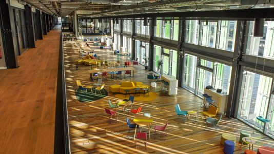 Auch die Menschen interagieren mit dem Gebäude. Dies geschieht über die Smart Building App von Pinestack und erleichtert den Arbeitsalltag: Die App spart Zeit und sorgt für ein gutes Nutzererlebnis. Der Zutritt zum Hammerbrooklyn.DigitalPavillon und die Aufzüge sowie Lüftung, Temperatur und Verschattung lassen sich via Smartphone steuern – berührungslos und somit pandemiesicher. Zudem zeigt die App verfügbare Räume sowie Mobilitäts- und Gastronomieangebote an und ermöglicht deren Buchung. Auch erlaubt sie die Kommunikation mit dem Facility Management. Die Coronakrise hat in vielen Unternehmen die Einführung von Homeoffice und Desk Sharing beschleunigt. Daher haben viele Unternehmen Bedarf an digitalen Buchungstools sowie an Analysen des tatsächlichen Flächenbedarfs ihrer Mitarbeiter. Diese Tools stellt Pinestack ebenfalls bereit. Per Schnittstelle sind sie mit einer von Pinestack entwickelten IoT-Plattform verbunden. Diese „rechte Hirnhälfte“ des Bauwerks ist für die Nutzerinteraktion, das Emotionale, zuständig.