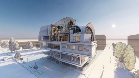 Das zweite Forschungsfeld setzt die Interaktion zwischen Drohnen und der Natur ins Zentrum. Die heutige Klimaforschung ist angewiesen auf Sensor- und Überwachungsdaten aus der Umwelt. «Drohnen sind optimale Datenlieferanten – insbesondere in unwegsamen und weiträumigen Gebieten. Sie können gezielt Sensoren in der Natur platzieren und mit regelmässigen Flügen die Daten ablesen», erklärt Mirko Kovac. Wichtig dabei ist, dass die Sensor- und Drohnensysteme selbst keinen nachteiligen Einfluss auf die Umwelt haben. Und genau darum geht es im «DroneHub»: In einer natürlich gestalteten Umgebung mit Bäumen und Waldboden lassen sich Tests mit biologisch abbaubaren Drohnen- und Sensormaterialien durchführen. Ein Teil dieser Biosphäre soll zudem als «Gewächshaus» für bio-hybride Roboterstrukturen dienen – also etwa zum Kultivieren von Bauteilen für Drohen aus nachwachsendem und biologisch abbaubaren Materialien.