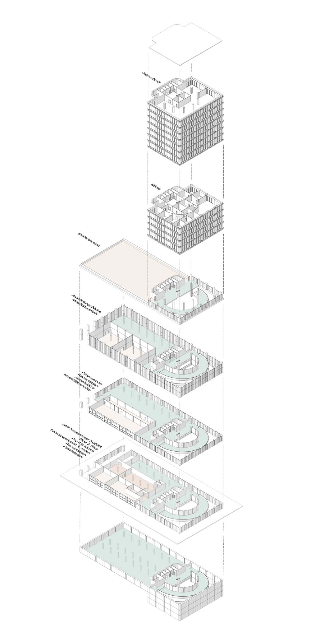 Insgesamt 32 Studierende hatten unter dem Titel „Renewal [De]Centrality“, in zwei unterschiedlichen Formaten, architektonische und städtebauliche Entwurfsarbeiten für Standorte in Hamburg rund um bestehende und zukünftig geplante S- und U-Bahnhaltestellen entwickeln.
