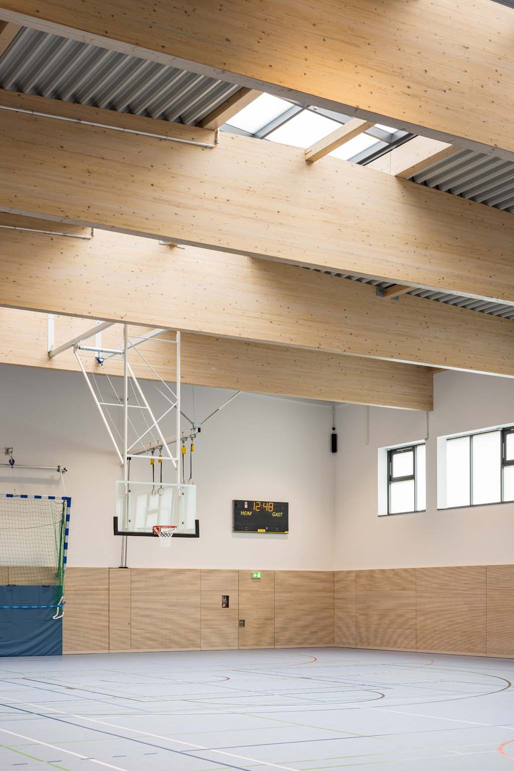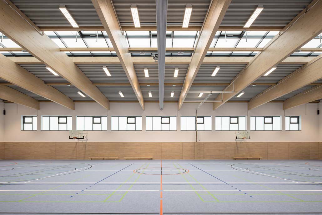 Die neuen Gebäude sind kompakt, wirtschaftlich und auf Langlebigkeit ausgelegt. Großzügige Fensterflächen sorgen für Tageslicht, senken den Energiebedarf und fördern eine gesunde Lernumgebung. Die zurückhaltende, robuste Materialwahl im Inneren unterstützt eine ruhige Atmosphäre und eröffnet vielfältige Nutzungsmöglichkeiten.