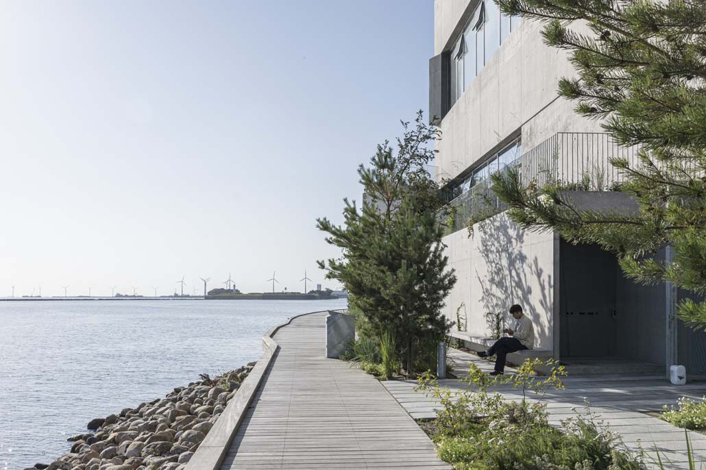 Am Fuße des Gebäudes hat BIG Landscape einen ehemaligen Parkplatz in einen 1 500 m2 großen öffentlichen Park verwandelt, der von den Sandstränden und Küstenwäldern der dänischen Landschaft inspiriert wurde. Im Norden bieten einheimische Waldbäume wie Kiefern und Eichen Schutz vor den rauen Winden des Hafens. Im Süden werden Bereiche mit Pflanzen, Felsen und Wäldern angelegt, um die Schaffung von Lebensräumen für die Artenvielfalt zu unterstützen und eine weiche Oberfläche zum Spielen und Entspannen zu bieten.