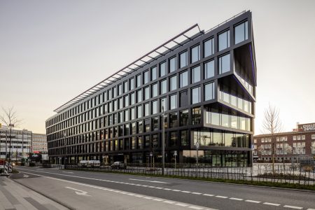 Die Anwendung reiner Materialien, verbunden mit dem weitgehenden Verzicht auf Kunststoffe und jede Art von Verbundwerkstoffen, bietet zudem die Möglichkeit, das gesamte Gebäude sortenrein zurück zubauen und die Baustoffe als wertvolle Ressource wiederzuverwenden. Die Paneele der Fassade sind bereits das Ergebnis einer solchen Kreislaufwirtschaft. Sie bestehen zu 90% aus recyceltem Aluminium und reduzieren den erheblichen Primärenergiebedarf dieses Werkstoffs. Eine leistungsfähige Gebäudedämmung mit dreifacher Sonnenschutzverglasung, Wärmerückgewinnungsanlagen und Ladestationen für Elektroautos in der zweigeschossigen Tiefgarage passen zum hohen ökologischen Anspruch. Die umlaufende Terrasse bietet spannende Ausblicke auf einen Stadtteil, zu dessen Aufwertung das Mercator One selbst einen bemerkenswerten Beitrag leistet. Dieser wurde 2020 noch vor der Fertigstellung mit dem Architekturpreis BDA Rechter Niederrhein belohnt.