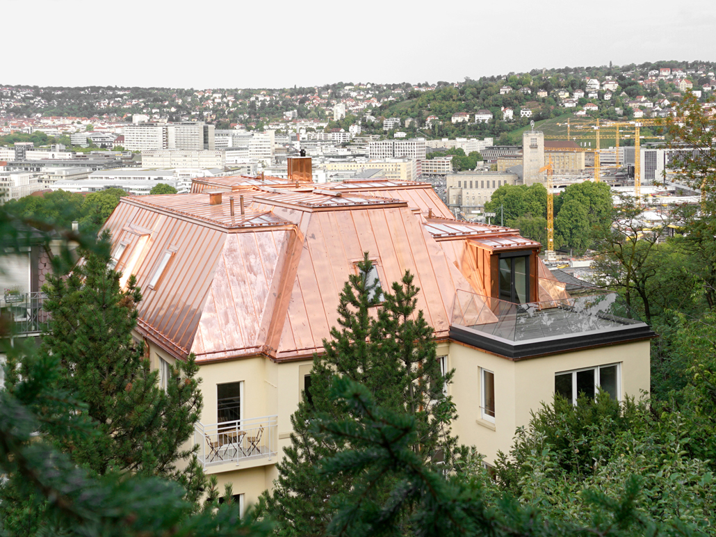 Zeitgenössische, alltagstaugliche Architektur, die die Tradition wahrt. Diesem Anspruch wird das Architekturbüro Cross Scale mit der modernen Neuinterpretation eines Satteldachs für ein Gründerzeitgebäude in Stuttgart mehr als gerecht. Entstanden ist ein mit Kupfer verkleidetes Dach, das sich durch seine ändernde Patina in das Gebäudeensemble einfügt. Cross Scale möchte mit dem Projekt auch dafür sensibilisieren, dass sich im städtischen Raum unter Dachflächen ein großes Nachverdichtungspotential befindet, also Wohnraum, der dringend benötigt wird.