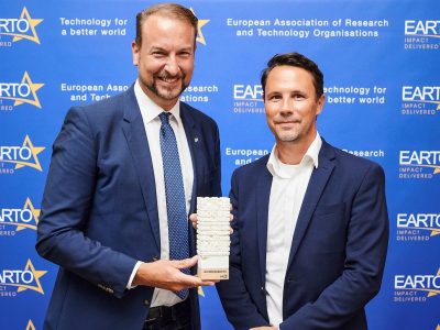 Die Preisverleihung fand bereits zum 15. Mal statt. Prof. Dr.-Ing. Manfred Renner, Institutsleiter des Fraunhofer UMSICHT, und Nils Mölders, Abteilungsleiter Produktentwicklung, nahmen den Preis für das Team in Brüssel entgegen. Der EARTO Award würdigte insgesamt sechs Innovationsprojekte in den zwei Kategorien »Impact Expected« und »Impact Delivered«.