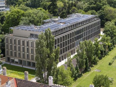 Das Ziel der Generalsanierung war anspruchsvoll: ein über den gesamten Lebenszyklus CO2-neutrales, modernes und lichtdurchflutetes Bürogebäude, das auf seine historische Lage – zwischen dem UNESCO-Weltkulturerbe Schloss Belvedere mitsamt Park, dem Salesianerinnenkloster und dem Botanischen Garten – reagiert und die umgebende Parklandschaft ins Gebäudeinnere holt. Mit der architektonischen Geste einer filigranen transparenten Holzfassade nimmt der Bau den Genius Loci auf und macht auf jedem Geschoss den Naturraum erlebbar. Neben der funktionalen Neugestaltung im Einklang mit den Anforderungen des Nutzers galt es, das Gebäude insbesondere hinsichtlich Tragwerk, Brandschutz, Sicherheitstechnik und Energieversorgung umfassend zu modernisieren.