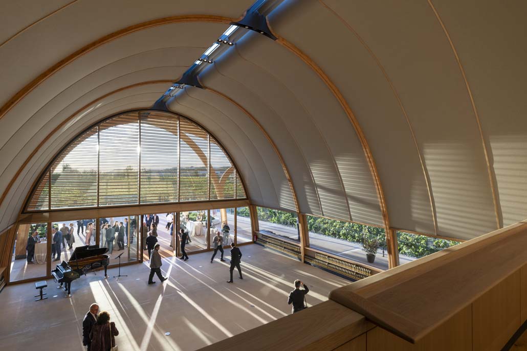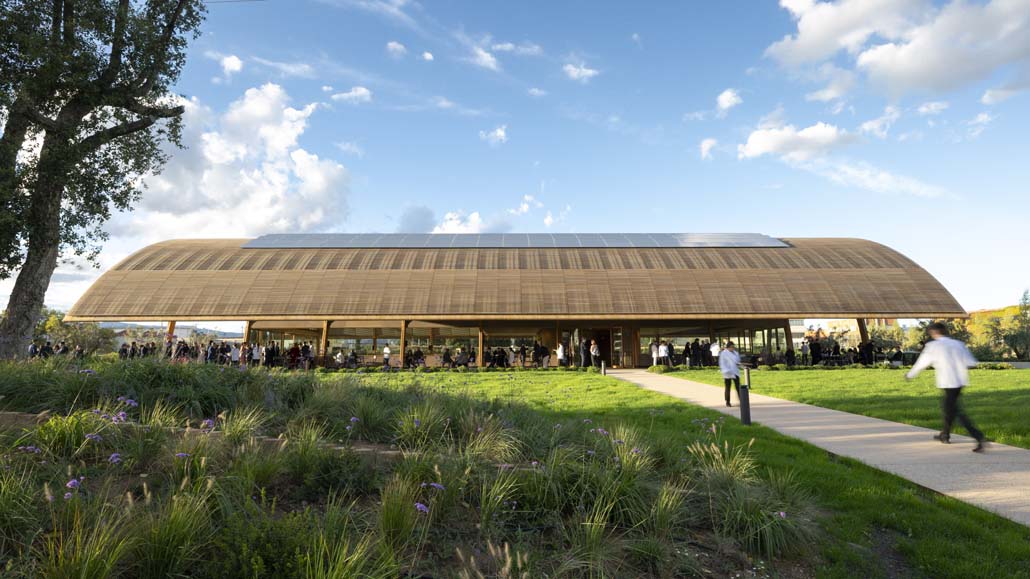 Das neue Besucherzentrum wurde als „Planet 1.0“-Gebäude eingestuft, da seine Kohlenstoffemissionen problemlos von der grünen Hülle der Erde absorbiert werden können, was es zu einem echten Beispiel für Nachhaltigkeit macht. Das Gebäude verfolgt außerdem eine Energie-Plus-Strategie, die von den Photovoltaik-Paneelen auf dem Dach angeführt wird, die mehr Energie erzeugen, als für den Betrieb des Gebäudes erforderlich ist. Die überschüssige Energie wird in die bestehenden Gebäude der Weinkellerei umgeleitet. Das Gebäude verfügt über große Überhänge an allen vier Seiten, um den Wärmegewinn durch die Sonne zu reduzieren und die Grenzen zwischen Innen und Außen zu verwischen. Ein zentrales Oberlicht und sorgfältig integrierte Glasfassaden bringen natürliches Licht in die Innenräume und reduzieren den Bedarf an künstlicher Beleuchtung. Natürliche Baumaterialien tragen zu einem biophilen Umfeld bei und steigern das Wohlbefinden von Besuchern und Mitarbeitern. Die neue Landschaft zeichnet sich durch einheimische Arten aus, die die biologische Vielfalt fördern, und durch eine diskrete Veränderung der Topografie, die das Weingut vor den immer häufiger auftretenden starken Regenfällen schützen soll.