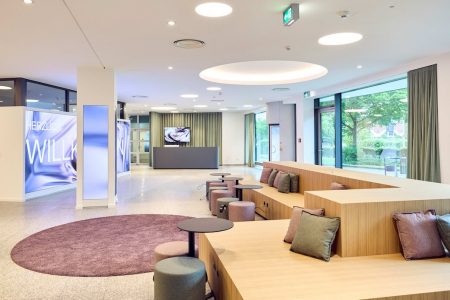 Bielefeld/Frankfurt am Main (pm) – Die auf die Renovierung und den Innenausbau von Gebäuden aller Assetklassen spezialisierte Goldbeck Technical Solutions GmbH hat die Collaboration- und Eventflächen im „Haus der Wirtschaft Hessen“ im Frankfurter Mertonviertel fit für die Zukunft gemacht. Im Auftrag von Hessenmetall, dem Arbeitgeberverband der Metall-, Elektro- und IT-Unternehmen in Hessen, übernahm die Goldbeck Technical Solutions – Teil der Dienstleistungssparte des europaweit tätigen Bau- und Dienstleistungsunternehmens Goldbeck – von Oktober 2023 bis Mai dieses Jahres den Innenausbau und die Aufwertung von Teilen des Büro- und Kongressgebäudes in der Emil-von-Behring-Straße.