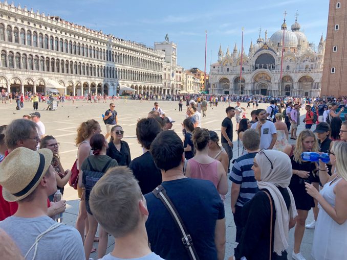 Politische, gesellschaftliche, räumliche, gestalterische oder intellektuelle Freiräume sowie deren Einschränkungen oder Abwesenheit waren die Themen, die die Teilnehmerinnen und Teilnehmer auf der Exkursion begleiteten. Daher standen sowohl der Besuch der „klassischen“ venezianischen Architekturhighlights wie beispielsweise Markusplatz, Rialtobrücke, Friedhofsinsel, Fondaco dei Tedeschi, Ponte della Costituzione und Olivetti Showroom wie auch die intensive Auseinandersetzung mit den Themen der Biennale auf dem Programm. Hier wurden Fragen zu weltweit aktuellen Herausforderungen und Anforderungen an die Architektur gestellt und diskutiert. Diese waren beispielsweise Fragen an zukunftsfähige Wohnraum- und Mobilitätskonzepte oder auch an die Veränderungen der klimatischen Bedingungen und den damit einhergehenden Konsequenzen für Architektur und Stadtplanung.