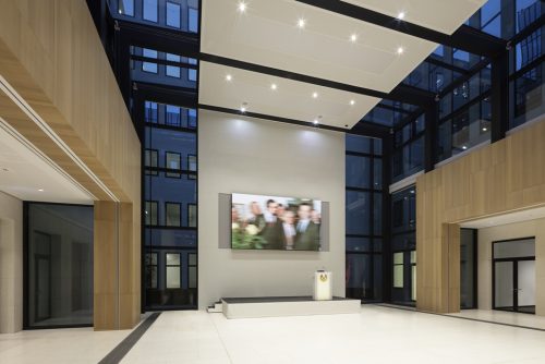 KATEGORIE „INTERIOR“ MIT DER AUSZEICHNUNG „SELECTION“: DVAG Frankfurt. Das Herzstück bildet ein Atrium, in dem bis zu 250 Personen bei Tagungen und Veranstaltungen Platz finden. Foto: HGEsch, Hennef