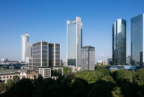 KATEGORIE „ARCHITECTURE“ Winner: Taunusanlage 8, Frankfurt. Mit klaren Baukörpern und präzise gesetzten Höhenstaffelungen korrespondiert es mit der vielfältigen Umgebung aus Parks, historischen Gebäuden, dem angrenzenden gründerzeitlichen Bahnhofsviertel und der vorhandenen Hochhauslandschaft. Foto: HGEsch, Hennef