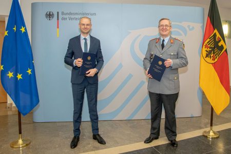 Berlin (pm) – Der Hauptgeschäftsführer des Hauptverbandes der Deutschen Bauindustrie, Tim-Oliver Müller, und der Abteilungsleiter Personal im Bundesministerium der Verteidigung (BMVg), Generalleutnant Klaus von Heimendahl, haben im Bendlerblock in Berlin eine Kooperationsvereinbarung zur gezielten Personalvermittlung abgeschlossen.