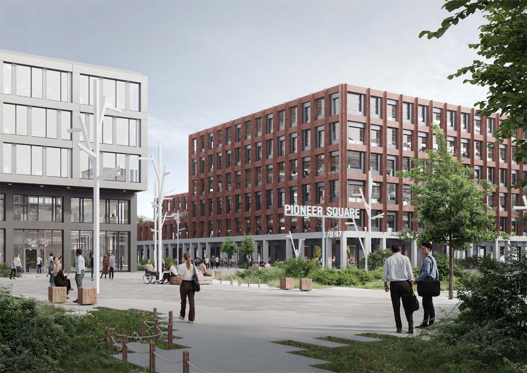 München (pm) – Mit der Veröffentlichung neuer Entwürfe des renommierten Architekturbüros KCAP Architects & Planners wird die Vision für das Pioneer Quarter, dem ersten von insgesamt vier Quartieren am LabCampus, greifbar: sechs neue Gebäude mit starker eigener Identität, großzügigem öffentlichen Raum wie dem zentralen Pioneer Square oder dem verbindenden Walkway, bieten Aufenthaltsqualität und zeichnen das Quartier aus. Die Visualisierungen machen den nächsten Entwicklungsschritt des insgesamt 26 Hektar großen Areals erstmals in seiner Gesamtheit sichtbar.