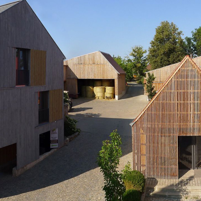 Der Haselnusshof Stiegler ersetzt einen durch Brand verloren gegangenen Dreiseithof in Cadolzburg bei Fürth. Beim Wiederaufbau ging es nicht nur um die funktionelle Planung eines modernen, neuen Bauernhofs, sondern auch um die existenzielle Sicherstellung der anstehenden Haselnussernte und deren Verarbeitung. Dürschinger Architekten beweisen mit ihrer Neuplanung, dass es auch im ländlichen Raum mit seinen funktionalen Zwängen und unter großem Kostendruck möglich ist, eine anspruchsvolle, vielschichtige Architektur umzusetzen. Die Planer haben für ihre Aufgabe eine zeitgemäße Architektursprache gefunden, die gleichwohl auf den traditionellen Baumaterialien, dem Kiefern- und Fichtenholz, und den traditionellen fränkischen Bauformen aufbaut. Die Basis der Neudefinition bildet die Wiederverwendung des Sandsteins der ehemaligen Stallgebäude sowie die Restaurierung der alten Hofschmiede. Die Scheune bildet den Nukleus der als Ensemble angelegten Anlage und gibt deren Körnung und Formensprache vor. Der rechtwinklige Haselnusshof tritt als eigenständiges Ensemble aus dem Dorfgefüge hervor und gliedert sich zugleich in selbstverständlicher Weise in das bestehende Dorfgefüge ein. Die neue Haselnuss-Rösterei verbunden mit dem Hofladen kennzeichnet das neue Entree des Stiegler-Hofs. Über große Fenster kann der Besucher den Prozess der Haselnussverarbeitung nachvollziehen und im Hofladen mit anschließendem Kastanienhof auch verkosten. Das neue Wohnhaus für die Jungbauern mit südlicher Austragswohnung bildet als zweiter Bauabschnitt den städtebaulichen und topografischen Abschluss zur Dorfstraße hin. Den westlichen Abschluss des Hofs zu den angrenzenden Pferdekoppeln bilden die neuen Scheunengebäude mit Werkstätten und Heulagerung. Die Jury gratuliert zu einem sehr gelungenen funktionalen Ersatzbau, der alle Ansprüche an Architektur erfüllt. Dies ist den Heinze ArchitektenAWARD in der Kategorie „Sonderwohnungsbauten“ wert.