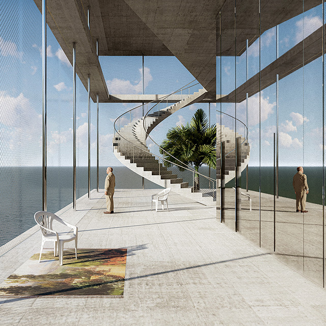 Der berühmteste Palazzo Pubblico stammt aus dem Jahr 1297 und steht in Siena an der Piazza del Campo. Für die Stadt Palermo hat sich der angehende Architekt Matthias Pabst von der Universität der Künste in Berlin an einer zeitgenössischen Fassung dieses großen Vorbilds versucht. Ziel des Entwurfs war es, eine vitale Plattform für das kulturelle Leben in Palermo zu schaffen. Seinen Palazzo Pubblico plante er darum als kaum verhüllte Diva, die stolz und frei stehend auf dem Foro Italico platziert ist. Das Foro ist eine Art Parkfläche, mit welcher die Stadt nach dem zweiten Weltkrieg – ausgehend von der damals bestehenden Promenade – in das Meer hinein erweitert wurde. Drei tragende Kerne, die in verschiedenen Geschosshöhen hängenden Deckenplatten und unterschiedlich definierte Lufträume im Zentrum reichen ihm als grundlegende Elemente aus, um eine faszinierende, eigenwillige Raumkomposition ins Werk zu setzen. Im Inneren überlagert sich ein räumliches Kontinuum unterschiedlich gestalteter Treppeninszenierungen, welche außen durch eine kolossale Vorhangfassade, im Sinne des Wortes, verhüllt werden. Die dramatische Draperie verhüllt oder eröffnet Ein- und Ausblicke aus der fragilen Raumkomposition. Auf diese Weise vermag die Architektur diesem neuen öffentlichen Ort intensive atmosphärisch-narrative Impulse zu geben. Es entstehen unkonventionelle, chimärenhafte Räume, welche eine kreative Interaktion und Kommunikation geradezu herausfordern. Ziemlich viel für ein Studienobjekt, meint die Jury und vergibt den Heinze Nachwuchspreis für den Palazzo Pubblico.