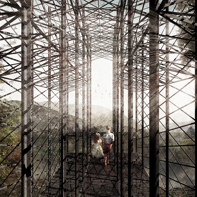 „Der Kürze halber möchte ich die Definition geben, dass die Schönheit eine bestimmte gesetzmäßige Übereinstimmung aller Teile sei, die darin besteht, dass man weder etwas hinzufügen noch hinwegnehmen könnte, ohne sie weniger gefällig zu machen.“ Wenn sich eine Jury bemüßigt fühlt, angesichts eines Studentenentwurfs diese großen Worte von Leon Battista Alberti herbeizuzitieren, muss wohl etwas Besonderes passiert sein. Die Waldkapelle Heidelberg von Marlies Richter und Mathias Wolf von der Technischen Universität Darmstadt ist so ein Wunderwerk. Sie ist als einfache Stahlkonstruktion konzipiert, welche in Verlängerung eines Waldwegs über einen Hang hinausragt. Die Konstruktion umrahmt und fasst den Raum und richtet den Blick über die Baumkronen des Walds. Doch dieser Weg der Einkehr ist kein Weg nach innen. Die Andacht suchenden sind Wind und Wetter, Licht und Dunkelheit ausgesetzt. Die filigrane Stahlkonstruktion soll nicht schützen, sondern öffnen. Von außen erscheint sie als ungeordnete Physiognomie, die sich jedoch im Inneren als klare Struktur zu erkennen gibt. Die Linienführung der Stahlträger beschreibt aus dieser Perspektive den Aufriss einer typischen Basilika, welche sich Joch für Joch mit Mittel- und Seitenschiffen allmählich abzeichnet und an deren Ende eine Gebetsbank steht. Die abstrakte Konstruktion verweist somit auf eine grundlegende Morphologie des christlichen Sakralraums. Marlies Richter und Mathias Wolf haben einen Entwurf gezeichnet, an dem – siehe oben – kein Teil hinzugefügt oder hinweggenommen werden kann, ohne ihn weniger gefällig zu machen. Eine tolle Interpretation der Kirchenbaugeschichte, findet die Jury und vergibt den Nachwuchspreis des Heinze ArchitektenAWARDs.