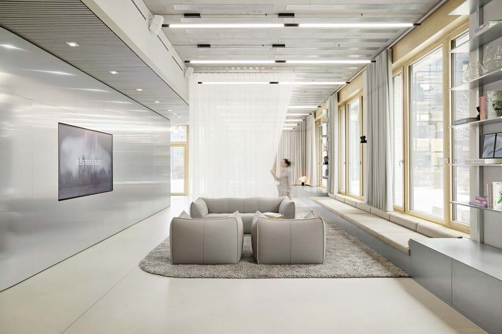 Katrin Jacobs, Partnerin und Head of Interior Design bei HENN, sagt: „Unser Interior Design übersetzt die reduzierte und zeitlose Markenidentität von BESTSECRET vom digitalen in den erfahrbaren Raum: Warmes Grau, natürliches Holz, roher Beton und spiegelnde Oberflächen schaffen einen neutralen Hintergrund voller spannungsreicher Kontraste. So wie BESTSECRET Fashion Brands online eine zurückgenommene Plattform bietet, rückt das neue Office die Menschen in den Mittelpunkt.“