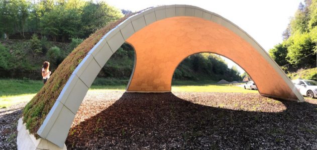 Der in der Publikation „Recycleshell: Wood-only Shell Structures Made From Cross-Laminated Timber (CLT) Production Waste“ beschriebene Holzpavillon steht im Diemersteiner Tal in der Nähe von Kaiserslautern. Er wurde 2019 errichtet und steht am Eingang des künftigen Holz-Forschungscampus des Fachbereichs Architektur der Technischen Universität Kaiserslautern (TUK).