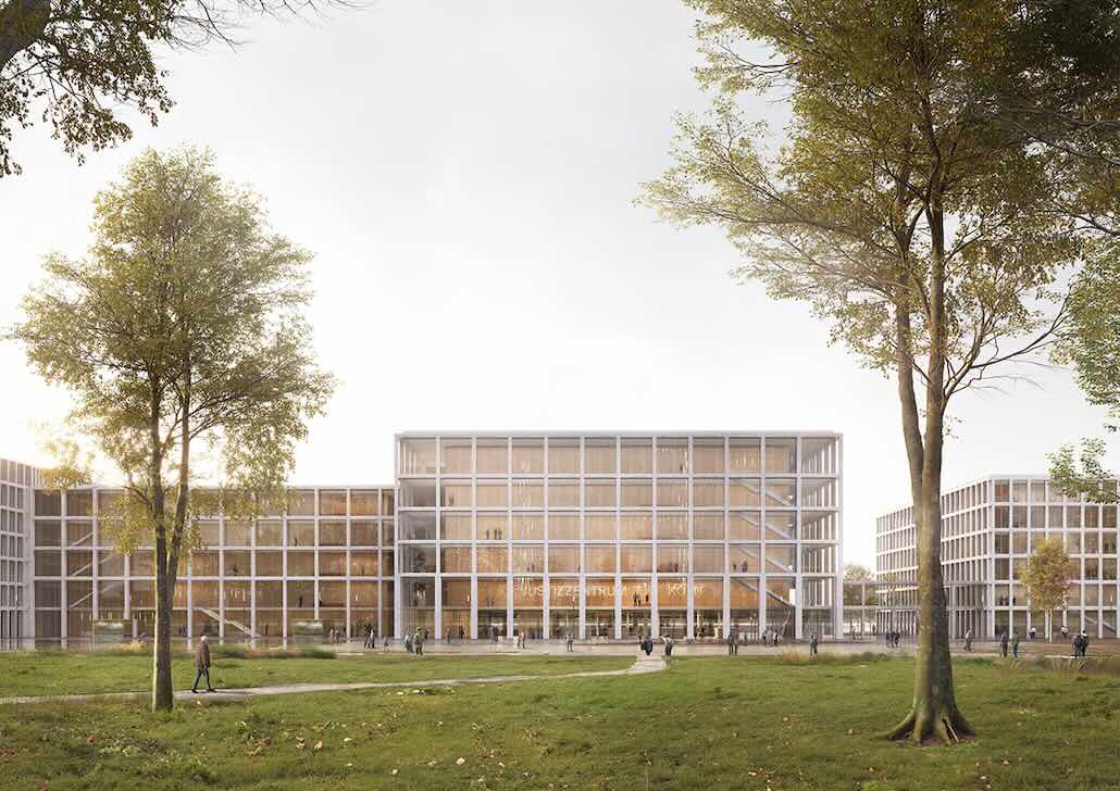 Düsseldorf (pm) – HPP Architekten haben das hochbauliche und freiraumplanerische Wettbewerbsverfahren für den Neubau des Justizzentrums Köln gewonnen. Das erste Verfahren, der städtebauliche Wettbewerb, fand bereits 2022 statt. Der Entwurf von HPP überzeugte damals die Jury und wurde mit dem 1. Preis ausgezeichnet. Zudem diente der städtebauliche Entwurf als Vorlage für den vorhabenbezogenen Bebauungsplan und als Grundlage für das 2023 folgende hochbauliche Wettbewerbsverfahren. Nun konnte HPP auch das zweite Wettbewerbsverfahren für sich entscheiden. Mit einer ressourcenschonenden Konstruktionsweise und der Verwendung von nachwachsenden Baumaterialien sowie einem Energiekonzept, das auf den Einsatz erneuerbarer Energien zur CO2-Reduktion setzt, ist das Justizgebäude gemäß den Richtlinien der EU-Taxonomie-Verordnung entworfen worden.