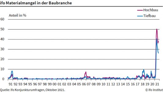 München (pm) – Die boomende Baubranche rechnet mit Nachschubproblemen bis ins kommende Frühjahr. Die Unternehmen glauben, dass die Lieferprobleme im Durchschnitt noch 5 Monate andauern werden, wie aus einer neuen ifo-Umfrage im Oktober hervorgeht. Gleichzeitig meldeten im Hochbau 38,0 Prozent der Betriebe Beeinträchtigungen durch Lieferverzögerungen, im September waren es noch 36,3 Prozent. „Die Entspannungstendenz der Vormonate setzte sich im Hochbau nicht fort“, sagt ifo Forscher Felix Leiss.