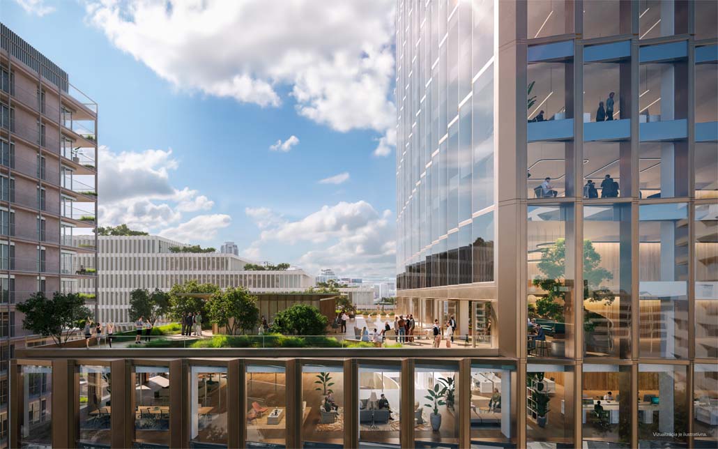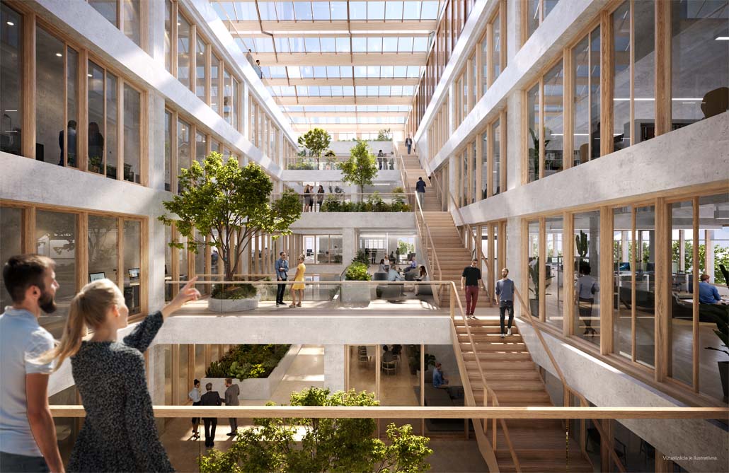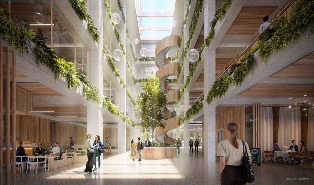 Martin Sobota, konzeptioneller Architekt von CITYFÖRSTER und Mitverfasser des Projekts der neuen Istropolis, teilt mit: „Wir sind sehr zufrieden damit, wie sich das Projekt in den letzten vier Jahren entwickelt hat. Es war ein intensiver Entwurfsprozess, der in enger Zusammenarbeit mit unseren lokalen Partnern entwickelt wurde. In dieser Zeit haben unsere Nachhaltigkeitsziele Gestalt angenommen – Immocap ist nicht nur in Bezug auf gesetzliche Anforderungen, sondern auch auf ESG-Kriterien führend. Die Masse und Dichte des Projekts in so zentraler Lage verschafft ihm einen Vorsprung in Bezug auf die individuellen Mobilitätsanforderungen, der Funktionsmix unterstützt intelligente Energiesysteme, und es ist uns gelungen, passive Klimalösungen zu integrieren, wie etwa eine externe Beschattung im Bürohochhaus, eine Mid-Door-Umgebung im Atrium des Bürogebäudes und verringerte Wärmegewinne im Konzertsaal durch den Einbau einer Lamellenfassade. Dieser ganzheitliche Ansatz ermöglicht es uns, die verkörperten Emissionen mit den betrieblichen Emissionen in Einklang zu bringen und das Gebäude aus der Perspektive des gesamten Lebenszyklus zu betrachten.“