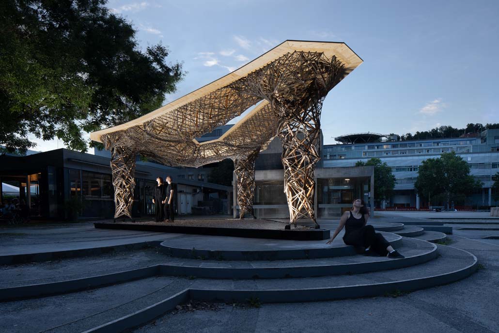 Als Forschungsdemonstrator markiert der Pavillon einen Schritt in Richtung einer neuen bio-basierten Materialkultur, die die Stärken von Holz und Naturfasern zu einem kohärenten strukturellen System integriert. Durch die Nutzung der komplementären Eigenschaften dieser beiden Materialien zielt die Forschung darauf ab, nachhaltige Lösungen für das Bauwesen zu entwickeln und die Gestaltungsmöglichkeiten bio-basierter Hybridstrukturen in der Architektur zu erweitern.