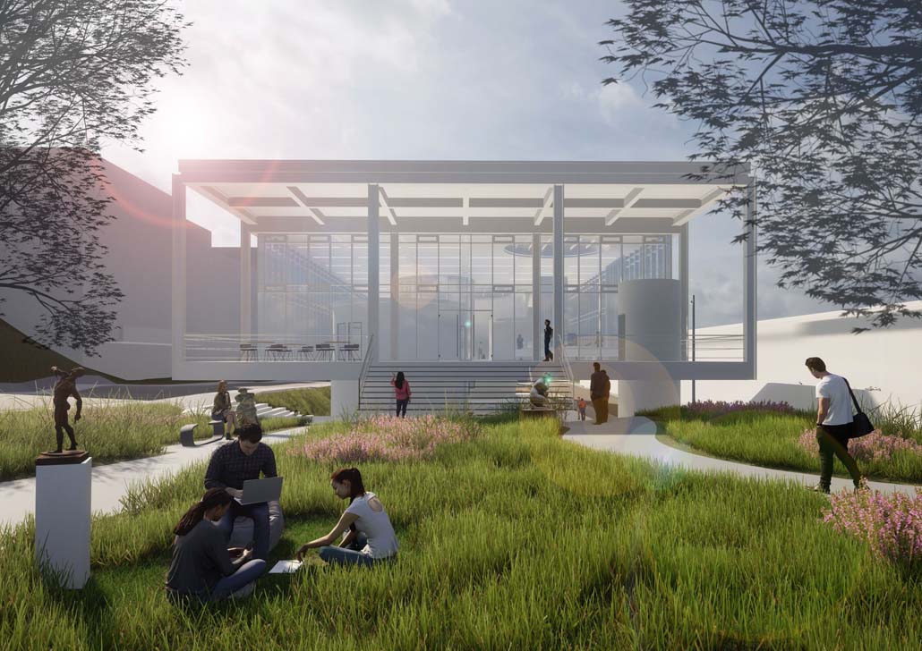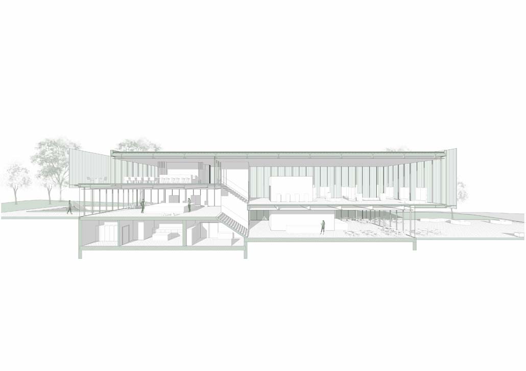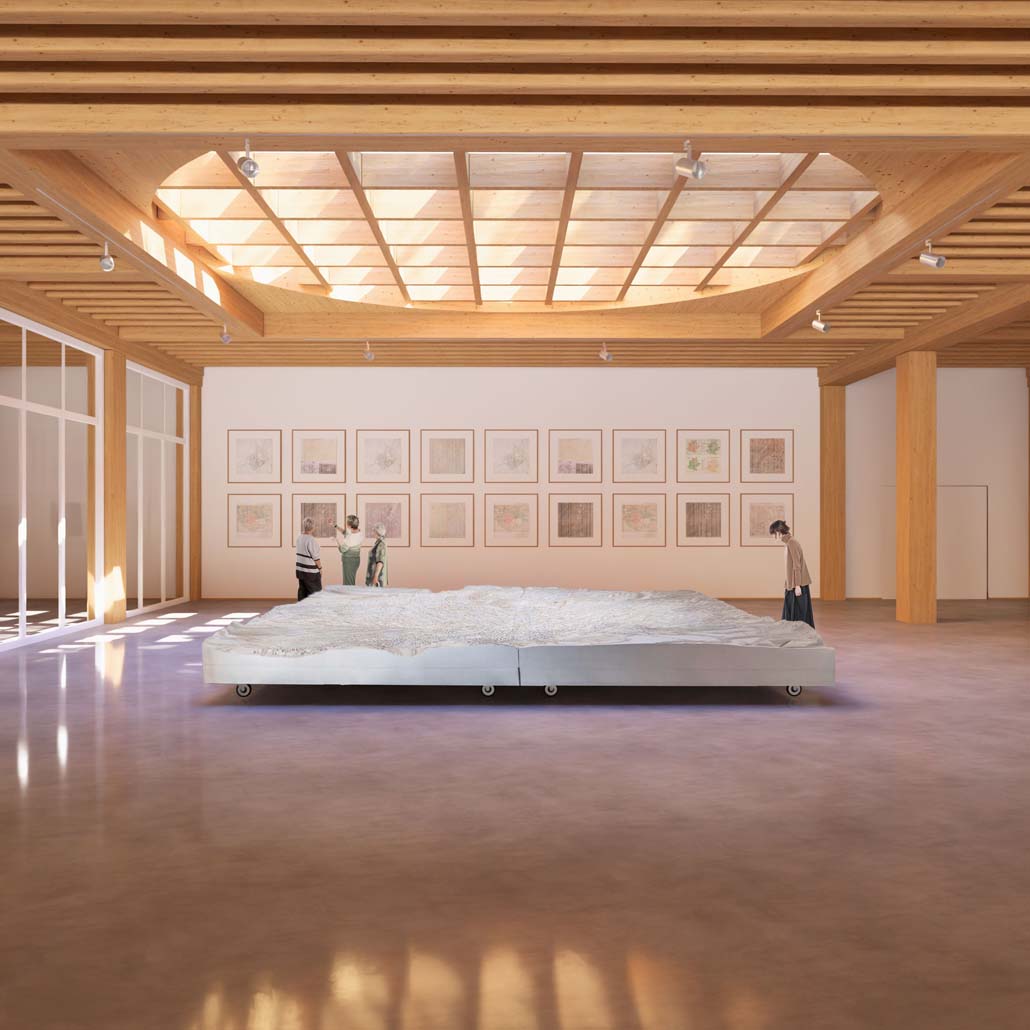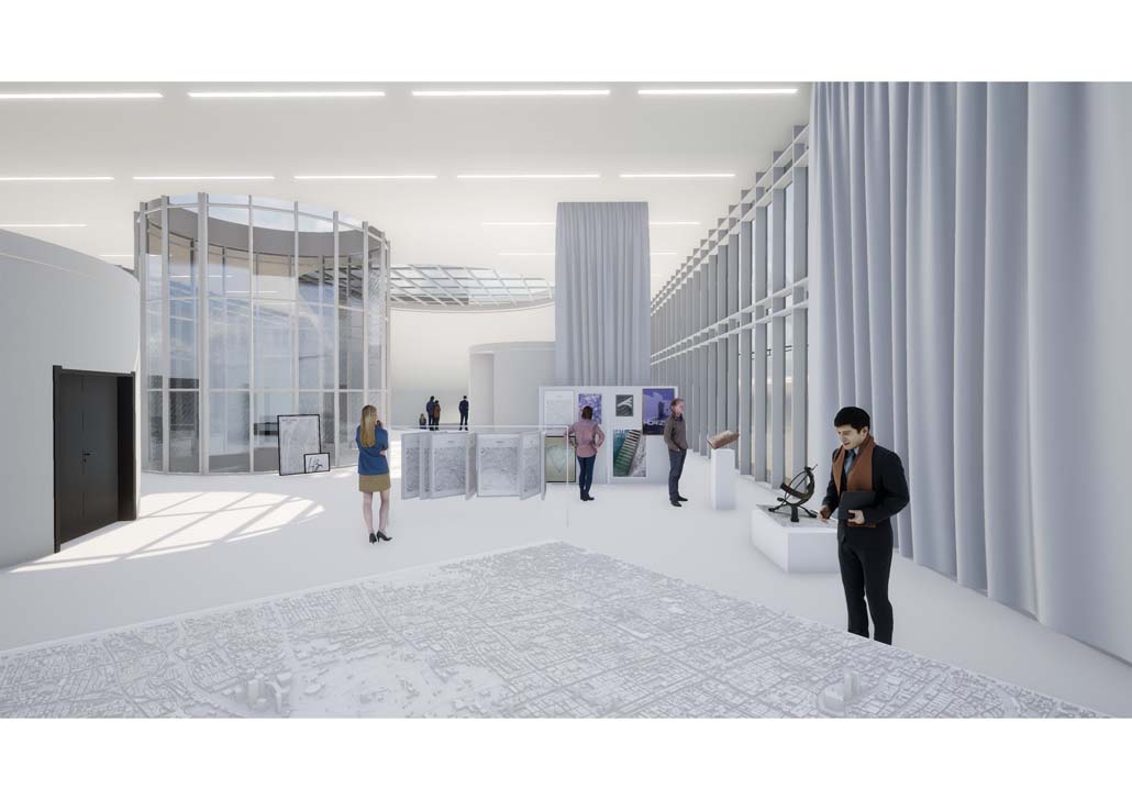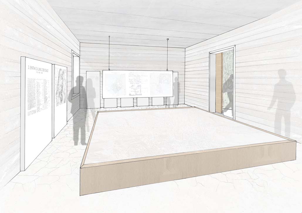 Die Pavillons tragen nicht nur zur Erhaltung des parkartigen Charakters bei, sondern verleihen diesem auch eine zusätzliche Bedeutung. Der Park soll weiterhin als öffentlich zugänglicher Ort für die Allgemeinheit fungieren und erhält die Funktion eines Museums für Architektur hinzu. Die Parkbesucher können sich somit bewusst oder unbewusst dafür entscheiden, sich mit der Ausstellung zu befassen oder den Park einfach nur als solchen zu nutzen. Es gibt eine öffentliche Ausstellung in einem offenen Pavillon am östlichen Hauptzugang, die immer zugänglich ist. Ein weiterer Ausstellungspavillon ist am nördlichen Hauptzugang platziert. Das Herzstück, der Hauptausstellungsraum mit dem Stadtmodell Roland Ostertags, ist zentral auf dem Grundstück platziert und bietet einen weiteren öffentlichen Ausstellungsbereich auf der direkt angeschlossenen Terrasse. Am südlichen Hauptzugang befindet sich ein Ensemble aus drei Pavillons, welches die Direktorenwohnung bildet.