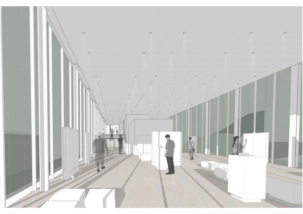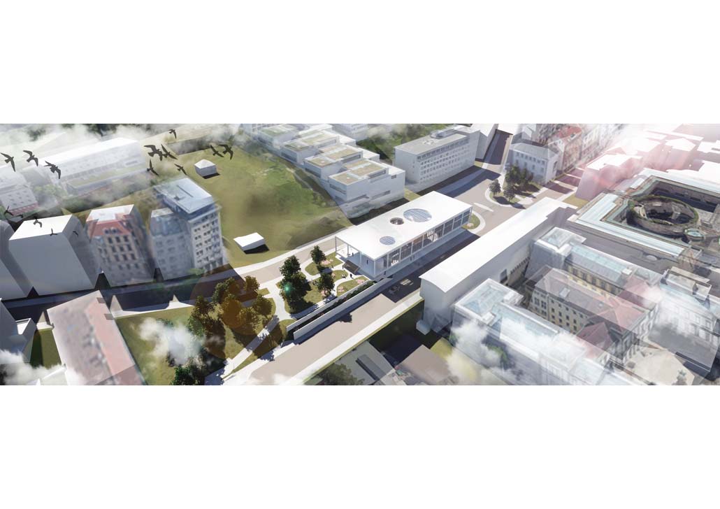 Das Grundstück bietet die Möglichkeit, mit dem „Haus der Architektur“ der Kulturmeile einen gebührenden Abschluss zu geben und die vielen losen Wegeverbindungen geordnet in einem Gebäude zusammen laufen zu lassen. Das Konzept des Entwurfs lebt von dem Verständnis der Lage als Endpunkt und Abschluss der Kulturmeile.