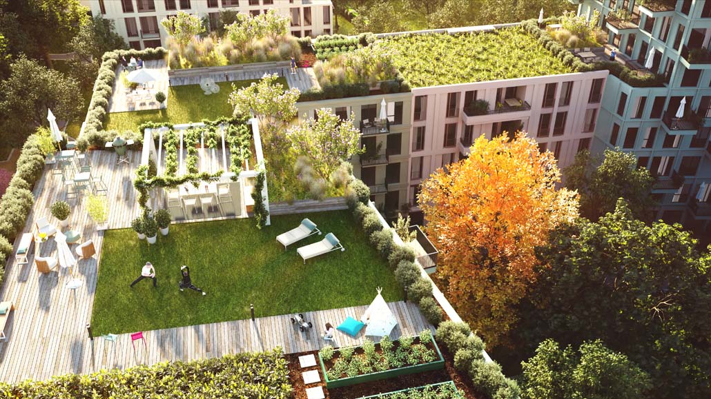 Das Projekt KIRSCHGÄRTEN entsteht auf einem 120.000 m² großen, vormals vollständig versiegelten Gewerbeareal im Münchner Stadtteil Untermenzing. Rund 50 Prozent der Fläche sind künftig als Grünflächen vorgesehen, darunter ein öffentlicher Park mit über 24.000 m². Die städtebauliche Struktur sieht rund 1.500 Wohnungen in Holz-Hybrid-Bauweise vor. Ergänzt wird das Quartier durch eine Grundschule, vier Kindertagesstätten, Nahversorgung, Gemeinschaftsdachgärten und Sharing-Mobilitätsangebote.