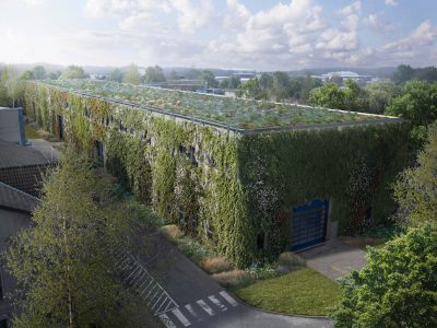 - 4570 Quadratmeter Fassade und Flachdach – fast ein halber Hektar – werden begrünt, davon 2660 Quadratmeter Dachfläche und 1910 Quadratmeter Fassade