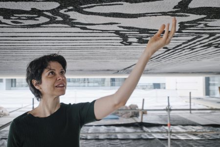 Genau dort steht jetzt über die Sommerferien wieder ein Gerüst, denn an der Deckenuntersicht wird das Kunst & Bau Projekt der österreichischen Künstlerin Anna Artaker realisiert.
