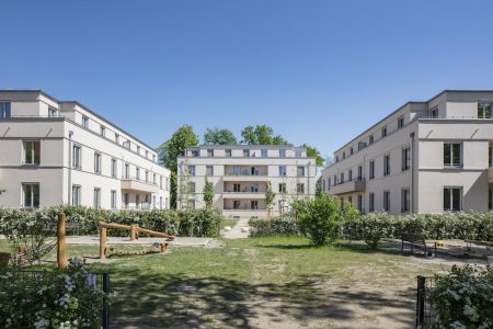 Auf dem Gelände des Ludwig Hoffmann Quartiers in Berlin-Buch hat die eqviva Projektsteuerung zusammen mit econcept Immobilien fünf Mehrfamilienhäuser errichtet und belebt damit das 28 Hektar große historische Krankenhausgelände vom Anfang des 20. Jahrhunderts. Das denkmalgeschützte Bau- und Gartenensemble wird zu einem modernen Stadtquartier umgestaltet, wobei die bestehende Bausubstanz erhalten und gepflegt wird. Die Gestaltung der modernen Gebäude folgt umfangreichen Vorgaben der Denkmalbehörde, die sich an den historischen Häusern orientieren, nicht aber kopieren. So entschied man sich für fünf freistehende Gebäude, die sich so harmonisch in den Bestand einfügen. Ebenso wurde die Geschossanzahl bei drei Häusern reduziert, um die Sicht auf das historische Gartenensemble freizugeben. „Nach der Erörterung verschiedener Gestaltungsansätze lag das Erfolgsgeheimnis für den reibungslosen und schnellen Planungsfortschritt in der engen und zügigen Abstimmung mit der Denkmalbehörde. So können wir mit Stolz auf eine Planungszeit von nur einem Jahr blicken. Das ist vor dem Hintergrund der enormen Wohnraumnachfrage ein großes Plus“, so Tilo Krause, Geschäftsführer der eqviva.