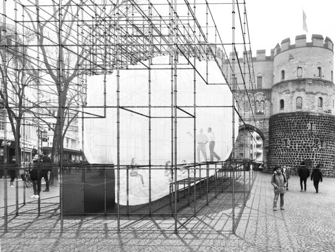 Köln (pm) – Am Dienstag, 11. September, startet um 15 Uhr das Projekt Palais Temporär auf dem Rudolfplatz in Köln. Der Palais ist eine erste Version eines mobilen Aktions- und Diskursraums für performative Kunst, organisiert von Kölner KünsterInnen, Kunstschaffenden und ArchitektInnen in Zusammenarbeit mit der Fakultät für Architektur der TH Köln. Kernstück ist eine sich mit Luft füllende Raumblase, die auf dem Rudolfplatz unter dem Motto „TRY&SUCCEED – 400 Füße, 400 Augen, 400 Hände“ in Bewegung ist und sich dabei stets wandelt. Die Blase ist ein Entwurf der Architekturstudentin Anna Spiekermann.